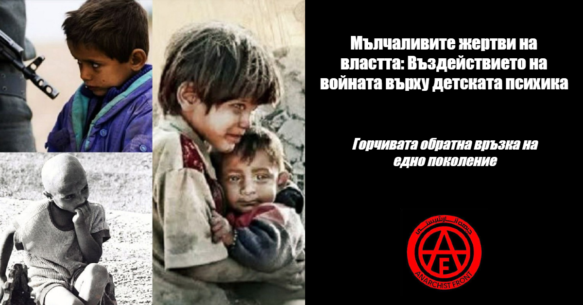 От анархистка гледна точка, цялата тази система не е аномалия, а самата природа на държавата. Държавата, като монопол върху легитимното насилие, се нуждае от война, за да оцелее. Войната поддържа пазара на оръжие, тласка икономиките към производство на смърт и държи народите в страх, така че те да търсят защита от самата държава. Децата във военни зони, най-уязвимите от всички, виждат тази същност без маскировка. Те не могат да бъдат измамени от лозунги за правата на човека или международната общност, защото всеки ден живеят с реалните последици от тези лозунги: поколение, което е или мъртво, ранено, или изпълнено с омраза, предадена на следващото поколение. Колективният отговор на тези деца в крайна сметка може да се превърне в преломна точка за системата. Ако едно поколение израсне, разпознавайки всички държави – западни, източни или местни – като източници на едни и същи страдания, то не може да бъде мобилизирано от обещания за вносна демокрация или религиозна революция. Вместо това те могат да се насочат към хоризонтални структури, самоорганизация и пълно отхвърляне на властта – не защото са прочели идеология, а защото житейският им опит не потвърждава нищо друго.